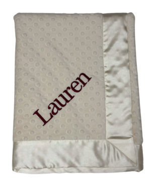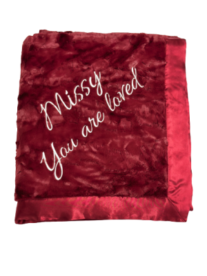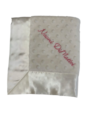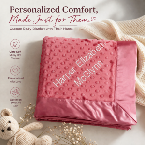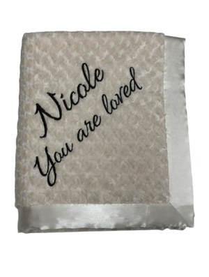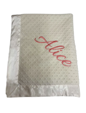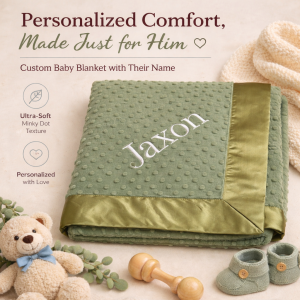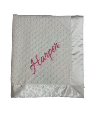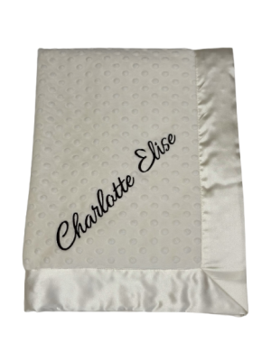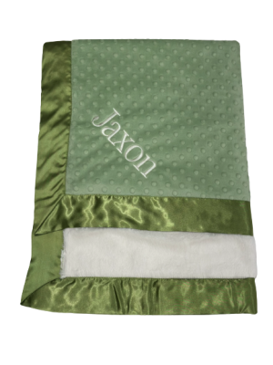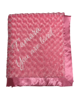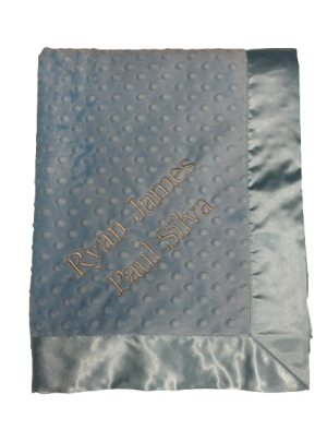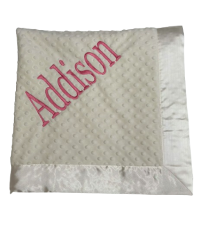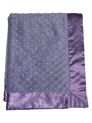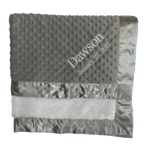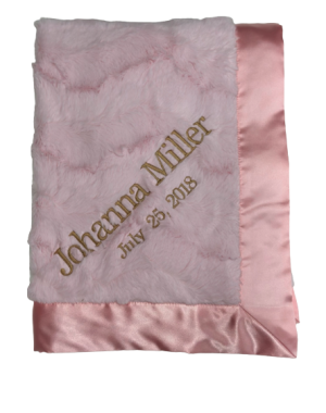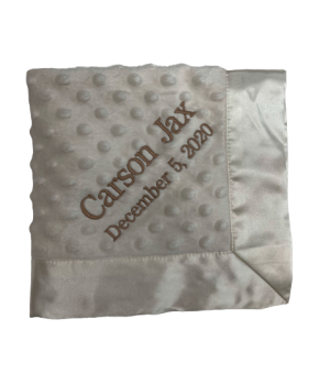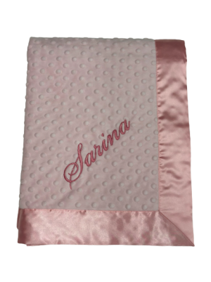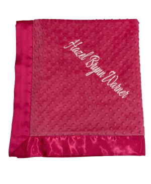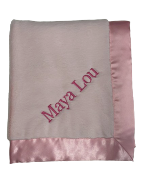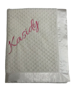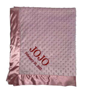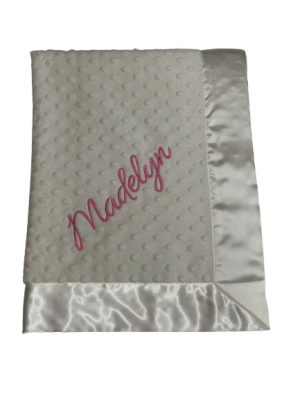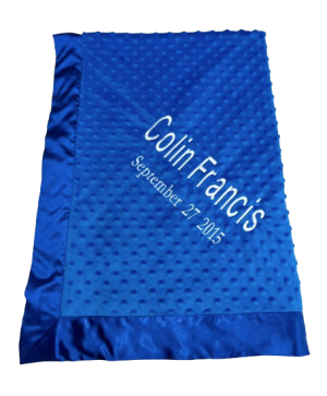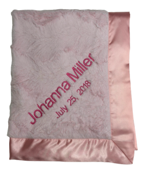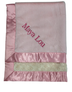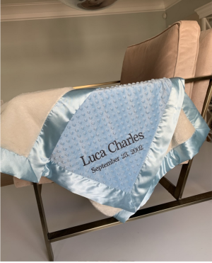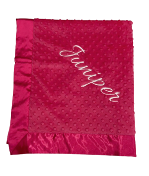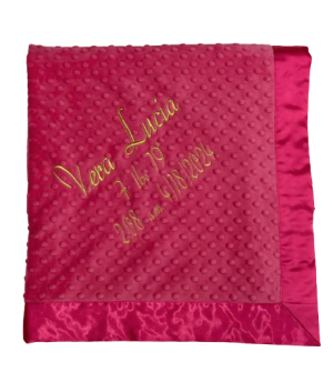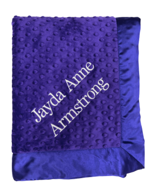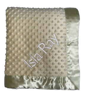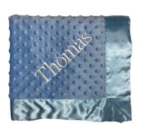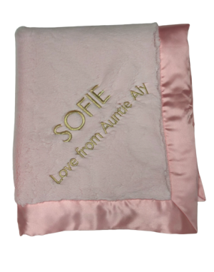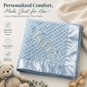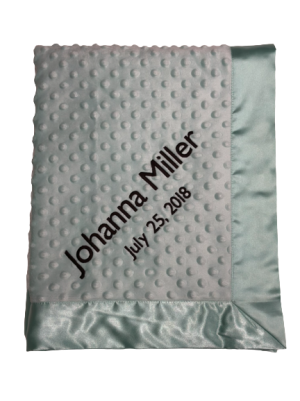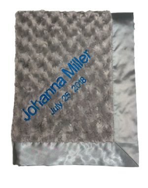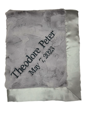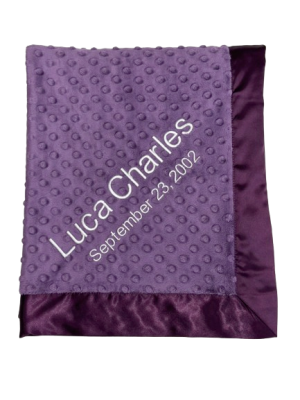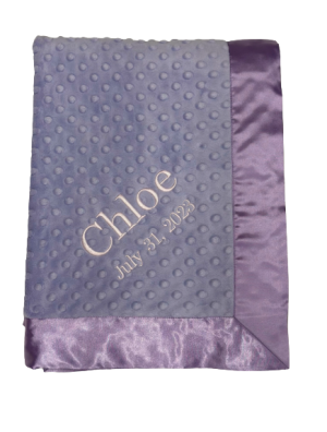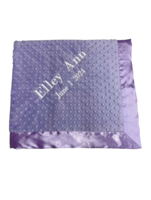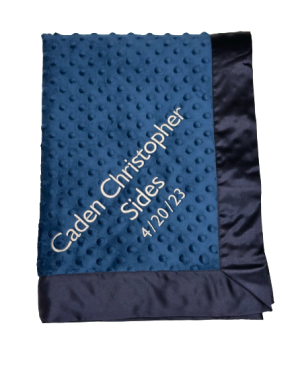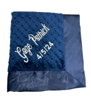 Our personalized baby blankets are designed to create meaningful, lasting gifts for newborns, baby showers, and special occasions. Each blanket is custom embroidered with your baby's name, making it a one-of-a-kind keepsake. Choose from a variety of soft minky fabrics, colors, and sizes to create the perfect personalized baby blanket.
